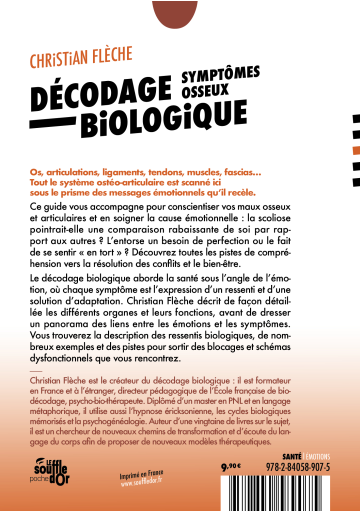 Découvrez toutes les pistes de compréhension vers la résolution des conflits et le bien-être. Le Décodage Biologique aborde la santé sous l’angle de l’émotion, où chaque symptôme est l’expression d’un ressenti et d’une solution d’adaptation. Christian Flèche décrit de façon détaillée les différents organes et leurs fonctions, avant de dresser un panorama des liens entre les émotions et les symptômes. Vous trouverez la description des ressentis biologiques, de nombreux exemples et des pistes pour sortir des blocages et schémas dysfonctionnels que vous rencontrez.