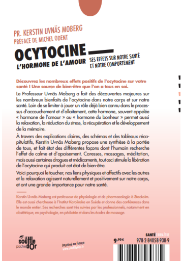 Le Professeur Uvnäs Moberg a fait des découvertes majeures sur les nombreux bienfaits de l’ocytocine dans notre corps et sur notre santé. Loin de se limiter à jouer un rôle déjà bien connu dans le processus d’accouchement et d’allaitement, cette hormone, souvent appelée « hormone de l’amour » ou « hormone du bonheur », permet aussi la relaxation, la réduction du stress, la récupération et le développement de la mémoire.