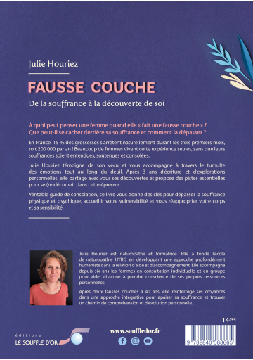 En France, 15 % des grossesses s’arrêtent naturellement durant les trois premiers mois, soit 200 000 par an ! Beaucoup de femmes vivent cette expérience seules, sans que leurs souffrances soient entendues, soutenues et consolées. Julie Houriez témoigne de son vécu et vous accompagne à travers le tumulte des émotions tout au long du deuil. Elle partage avec vous, après trois ans d’écriture et de recherche, des pistes essentielles pour se (re)découvrir dans cette épreuve.